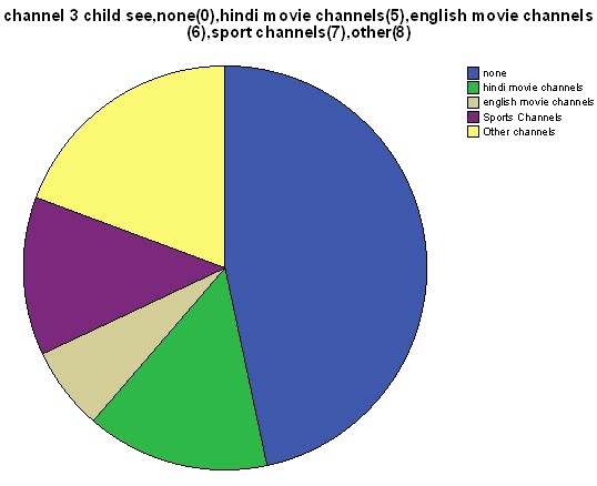 According to a random survey made in Hayatabad, a posh area in Peshawar Pakistan by student of Journalism and Mass Communication; average children from age 3-12 daily exposure time is between 1-4 hours. It means television is never missed although load shedding is a problem people of Pakistan face in routine life. 1-2 hours is an average time spent by 60% children. 2-4 hours are spent by 30% whereas at least 10% spent more then 4 hours daily.